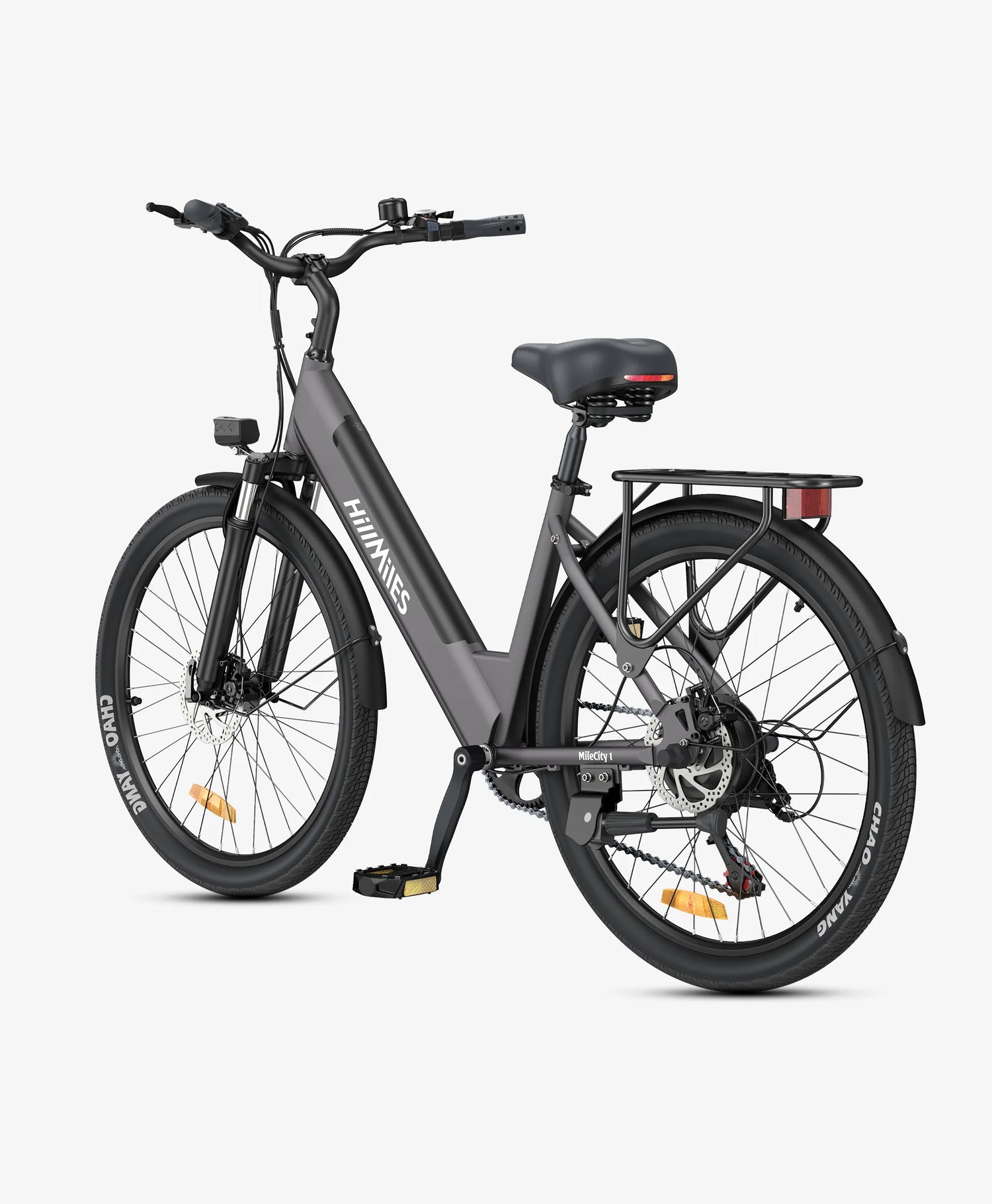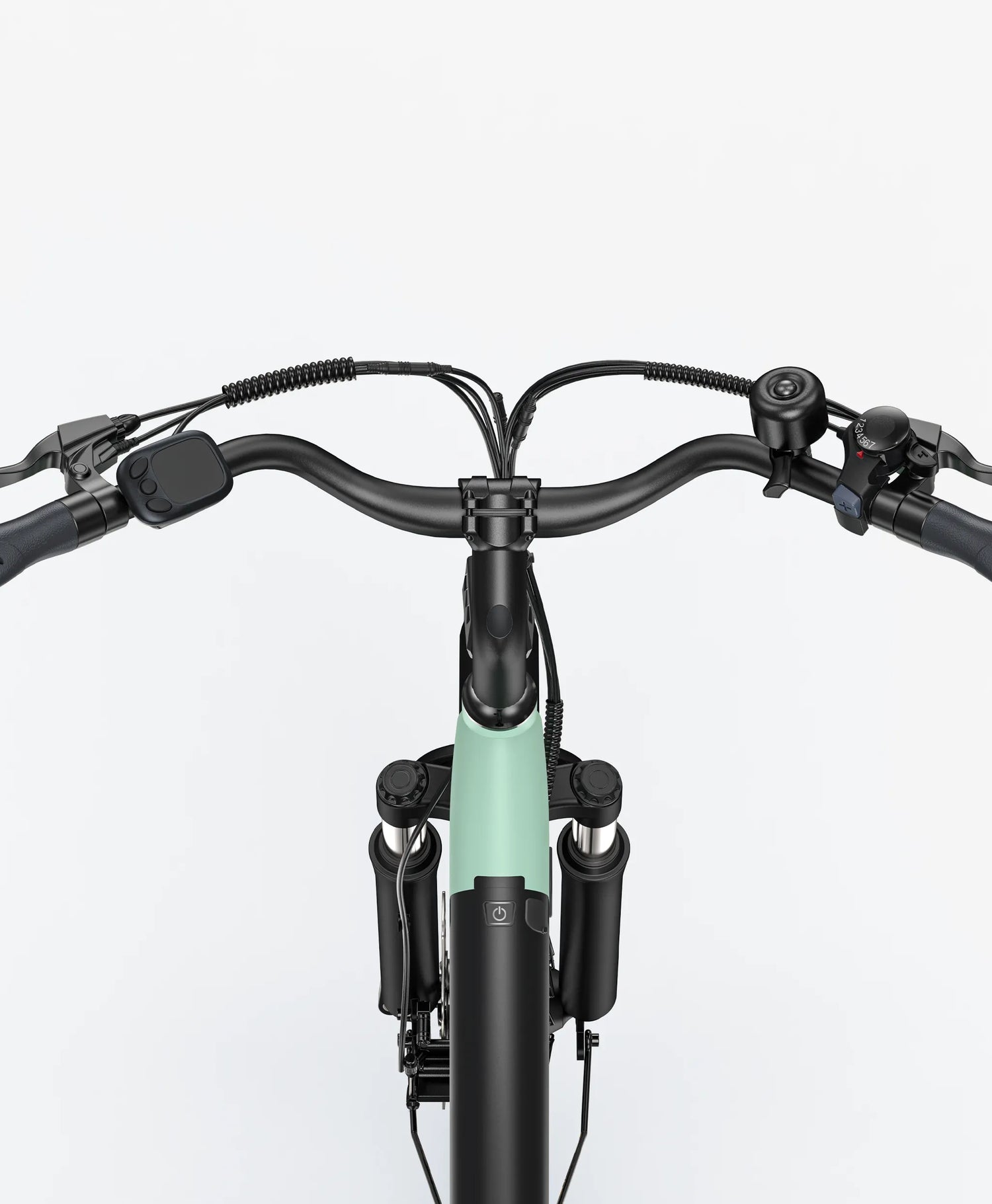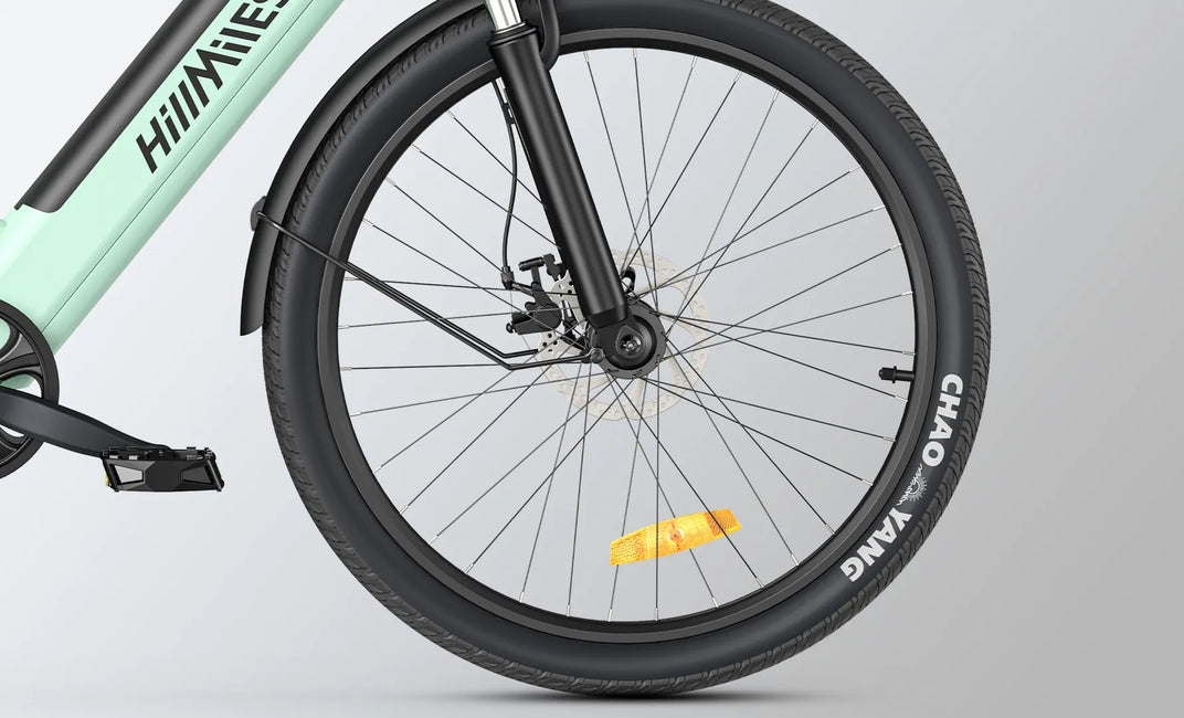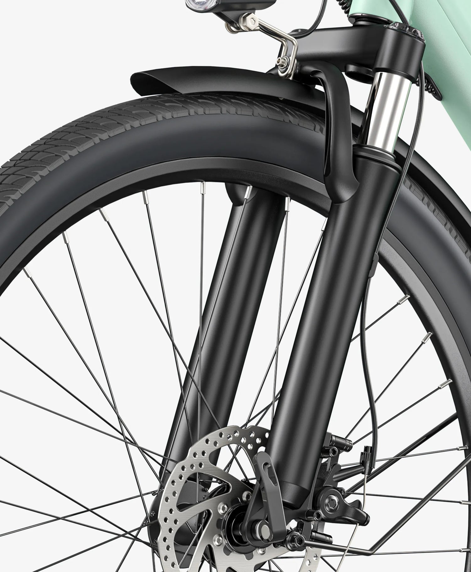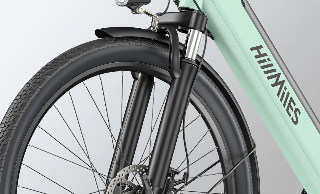 The front fork suspension absorbs bumps for your smoother and more stable riding.