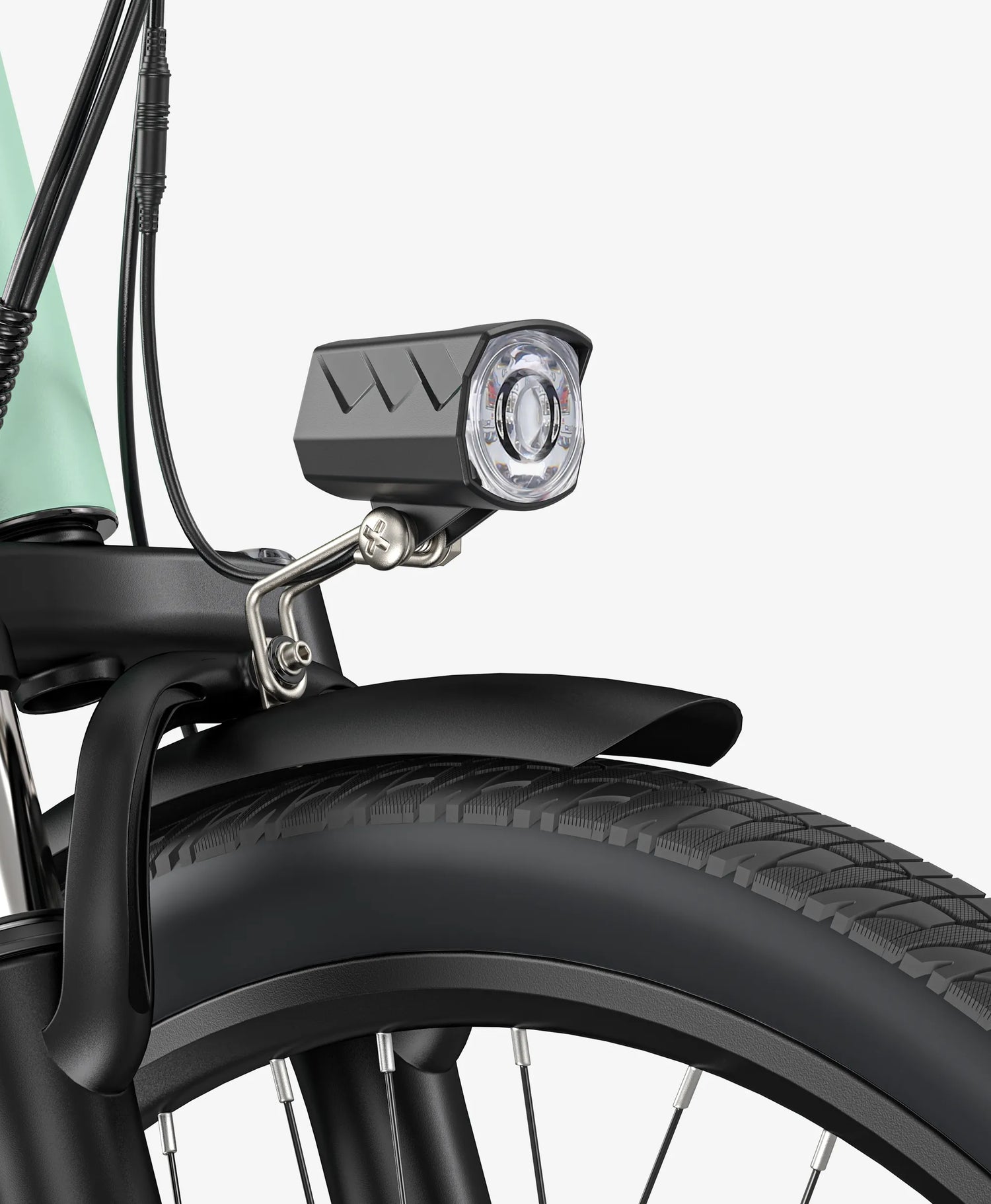 LED headlight and reflector are featured for safer riding, making you conspicuous in the dark night.Please note: To turn on/off the headlight, you need to press and hold the "+" button for 3 seconds.